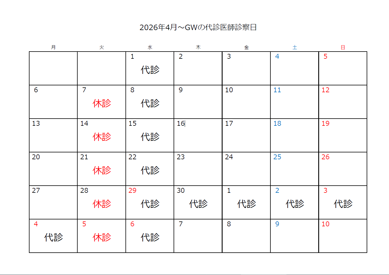 〇休診日 火曜